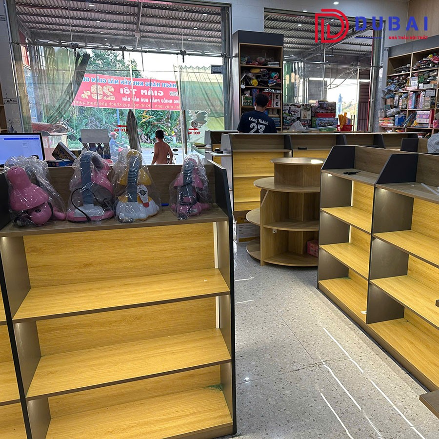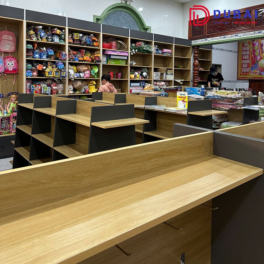Kệ sách và kệ trưng bày được Nội Thất DUBAI thiết kế và thi công nội thất từ chất liệu gỗ công nghiệp MDF cao cấp, bền đẹp và dễ bảo quản. Mỗi chiếc kệ không chỉ đảm bảo khả năng chịu lực tốt mà còn được thiết kế một cách tinh tế để phù hợp với phong cách và không gian của nhà sách. Các kệ được phân chia rõ ràng theo từng khu vực, dễ dàng giúp khách hàng tìm thấy các cuốn sách yêu thích một cách nhanh chóng.