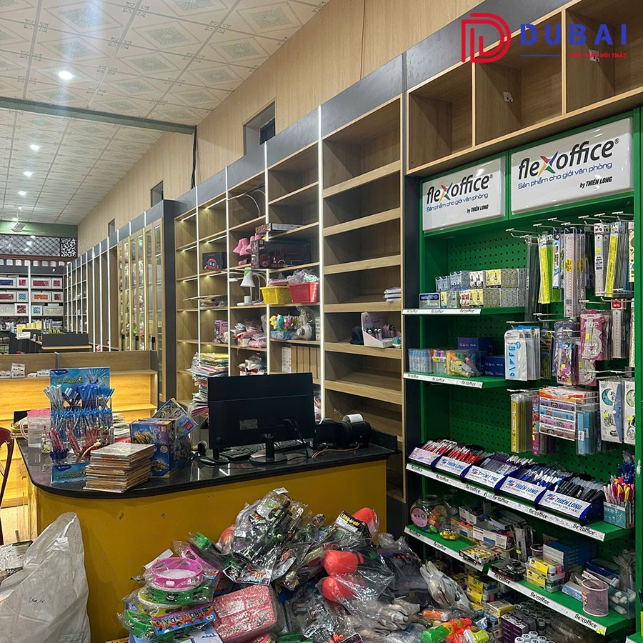 Với diện tích cửa hàng, Nội Thất DUBAI đã sáng tạo ra những thiết kế kệ sách và kệ trưng bày tinh tế, giúp không gian nhà sách trở nên gọn gàng, dễ dàng sắp xếp và trưng bày sách một cách hợp lý. Các kệ được thiết kế thông minh, không chỉ phục vụ cho việc trưng bày sản phẩm mà còn mang lại sự tiện lợi cho khách hàng khi tìm kiếm sách theo thể loại. Các kệ sách được sắp xếp khoa học, giúp không gian trở nên rộng rãi, thoáng đãng, đồng thời tạo điểm nhấn thu hút khách hàng.