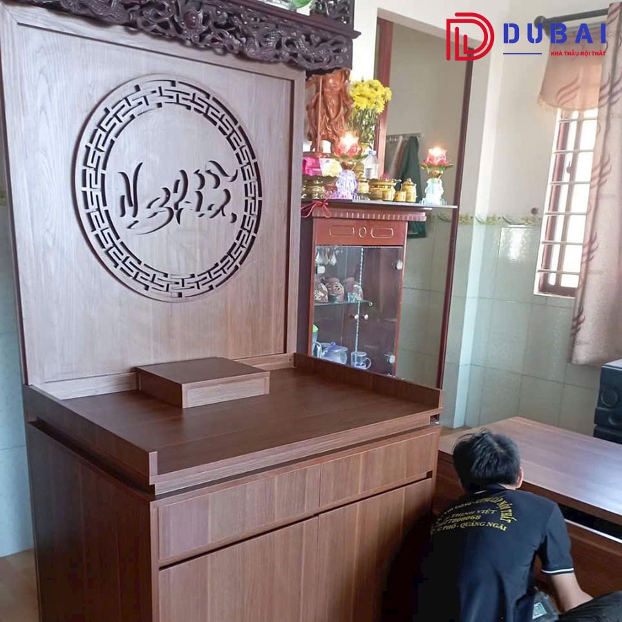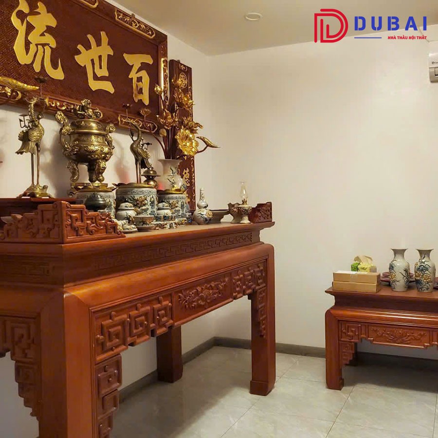 Phòng thờ luôn là không gian linh thiêng và quan trọng trong mỗi ngôi nhà, nơi gia đình thể hiện sự tôn kính đối với tổ tiên và cầu chúc cho sức khỏe, an khang thịnh vượng. Hiểu được điều này, Nội Thất DUBAI đã thực hiện một dự án thi công nội thất phòng thờ tại Thủ Đức, hoàn thiện trong chỉ 5 ngày. Sản phẩm chính của dự án là bàn thờ cùng không gian phòng thờ được thiết kế tinh tế, độc đáo, sản xuất từ chất liệu gỗ cao cấp, đặc biệt được thiết kế theo phong thủy phù hợp với gia chủ. Dưới đây là chi tiết về quá trình hình thành và thực hiện dự án thi công này.