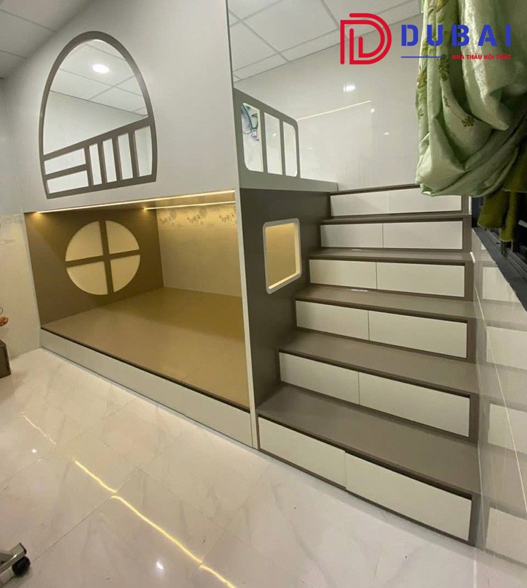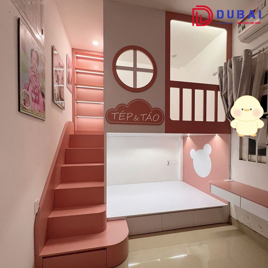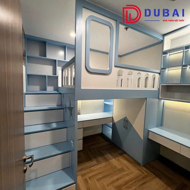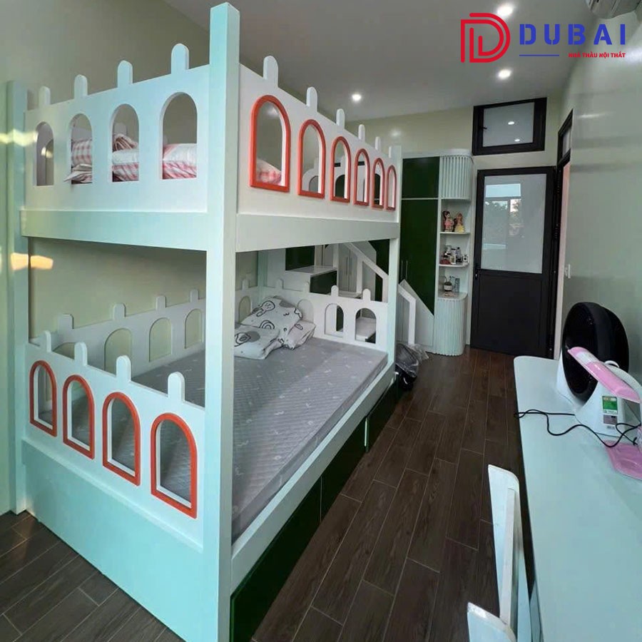 Phòng ngủ trẻ em không chỉ là nơi các bé nghỉ ngơi sau một ngày học tập, mà còn là không gian giúp các bé phát triển tư duy và khả năng sáng tạo. Với mong muốn mang đến cho các bé một không gian vừa sang trọng, vừa tiện nghi, Nội Thất DUBAI đã thực hiện dự án thi công phòng ngủ cho bé trai và bé gái tại Quận 1. Dự án được hoàn thành chỉ trong 5 ngày, với thiết kế hệ giường tầng thông minh tích hợp tủ, tạo không gian rộng rãi và giúp các bé hình thành thói quen chăm chỉ học tập.