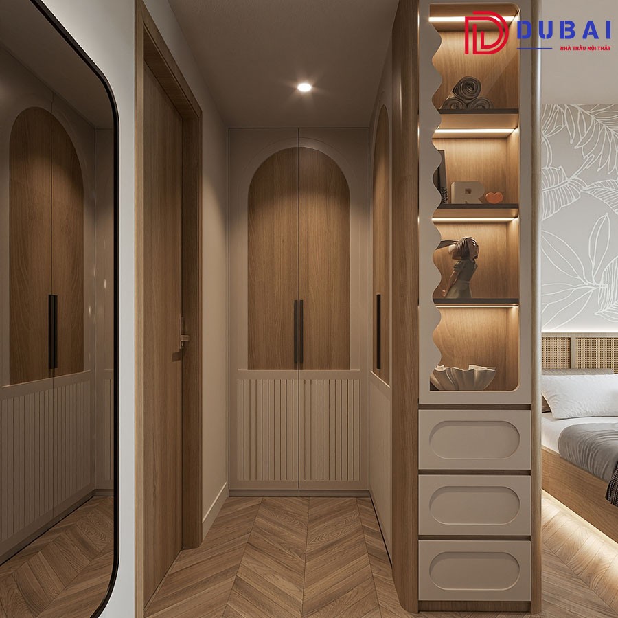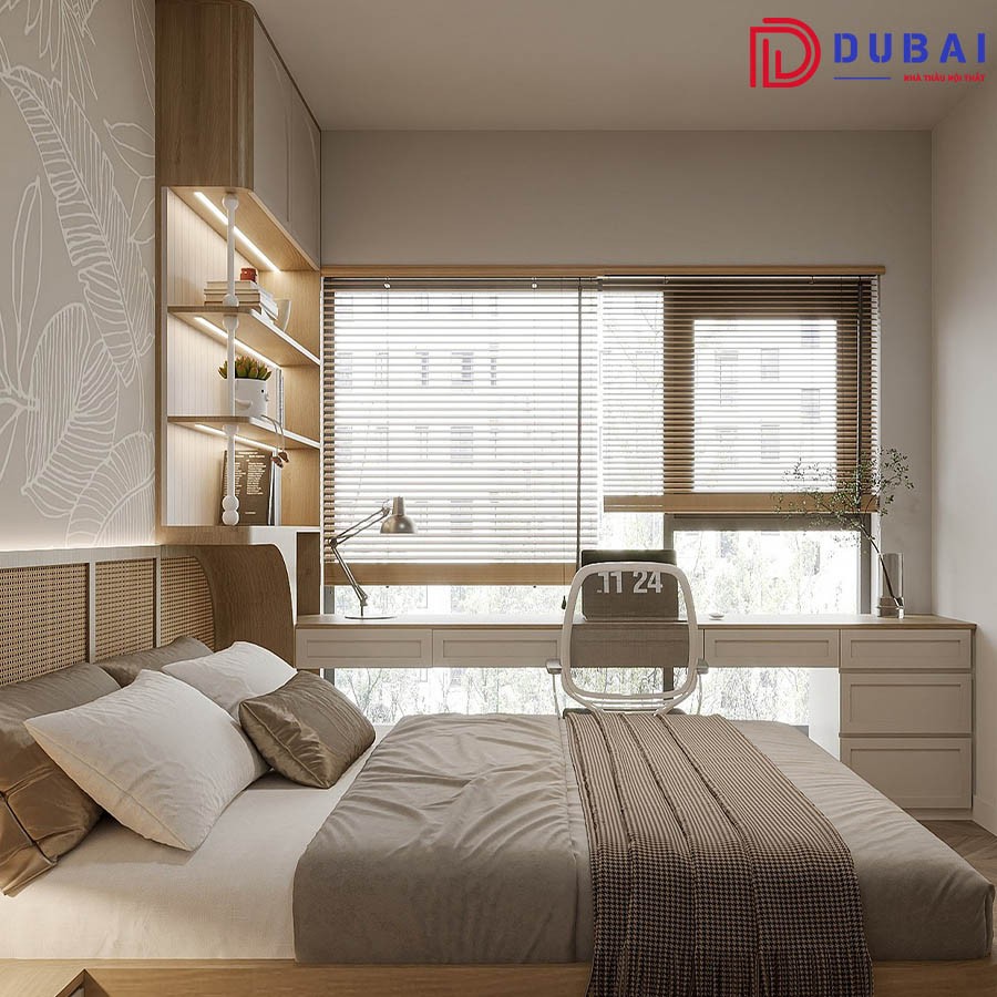 ♦ Phong cách: Phù hợp với căn hộ chung cư, phòng master vừa — nhỏ , hoặc phòng ngủ dành cho người làm việc tại nhà nhờ bàn học/ làm việc liền kề cửa sổ. Thiết kế tận dụng lưu trữ âm tường, thích hợp căn hộ đô thị cần tối ưu không gian.