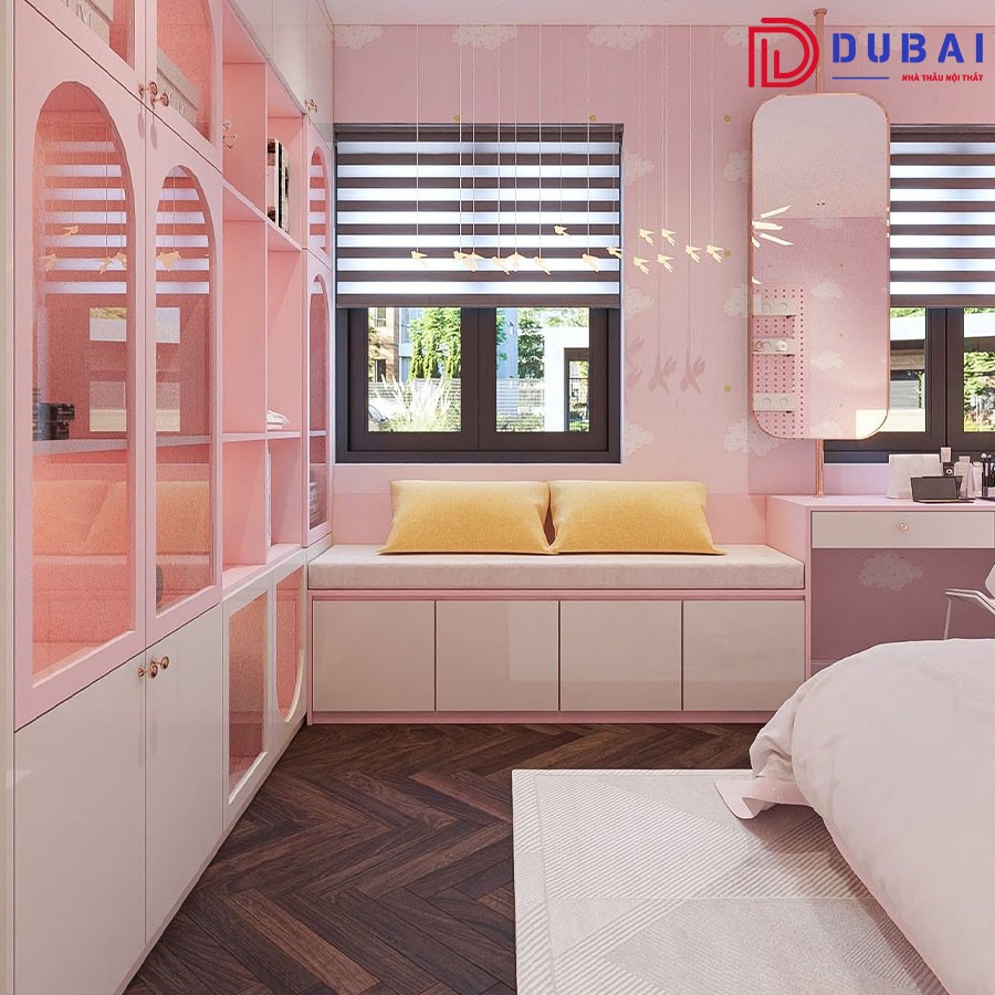 ♦ Phong cách: Phòng ngủ này mang đến sự kết hợp hoàn hảo giữa tính thẩm mỹ và tính năng sử dụng, tạo ra một không gian tuyệt vời cho bé gái học tập, vui chơi và thư giãn.