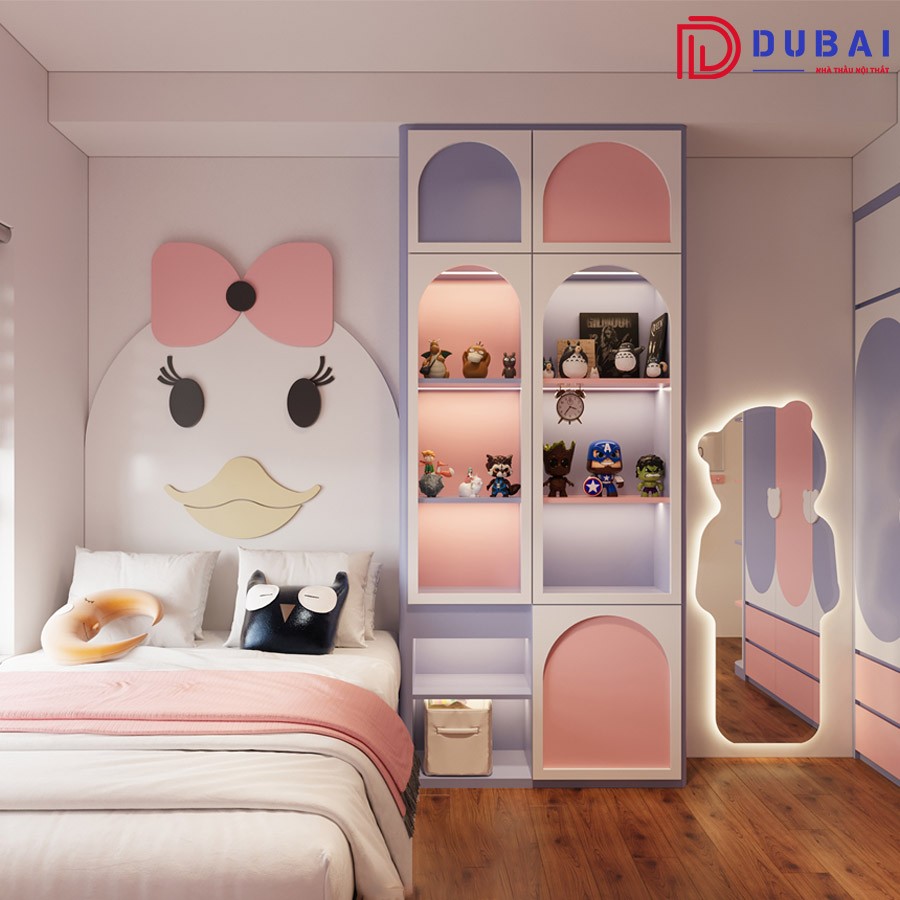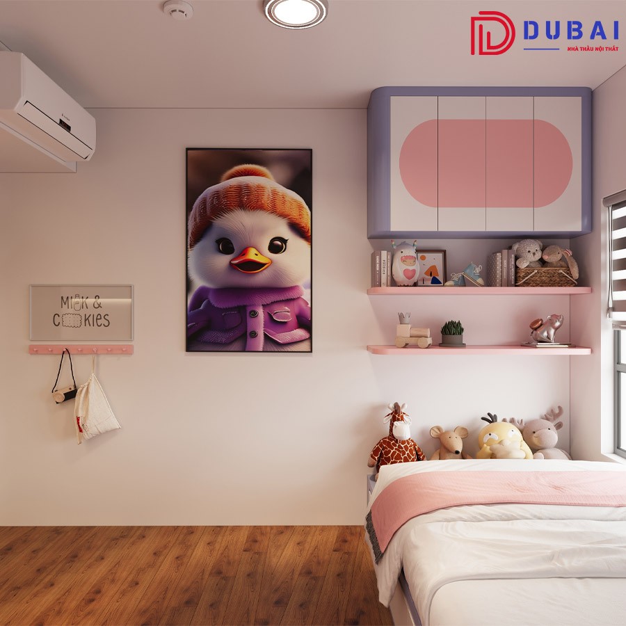 ♦ Phong cách: Thiết kế phòng ngủ cho bé gỗ công nghiệp MDF PN-11 tại Nội Thất DUBAI thể hiện sự tươi sáng, dễ thương và phù hợp với lứa tuổi của trẻ nhỏ. Các gam màu pastel nhẹ nhàng như hồng, tím và trắng tạo không gian ấm áp và dễ chịu, giúp trẻ cảm thấy thoải mái trong không gian riêng của mình.
