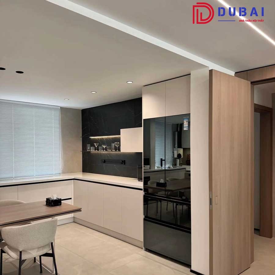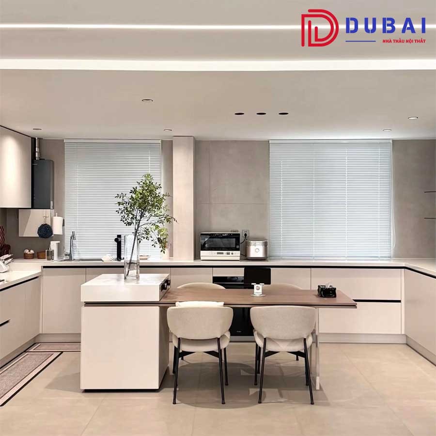 ♦ Phong cách: Bố trí công năng khoa học với khu vực nấu nướng, rửa và lưu trữ tiện lợi, đảm bảo sự thuận tiện trong sinh hoạt hằng ngày. Mẫu tủ bếp này đặc biệt phù hợp với căn hộ cao cấp, biệt thự hiện đại hoặc nhà phố có diện tích rộng, nơi gia chủ đề cao tính thẩm mỹ, sự tiện ích và không gian sinh hoạt gia đình sang trọng.
