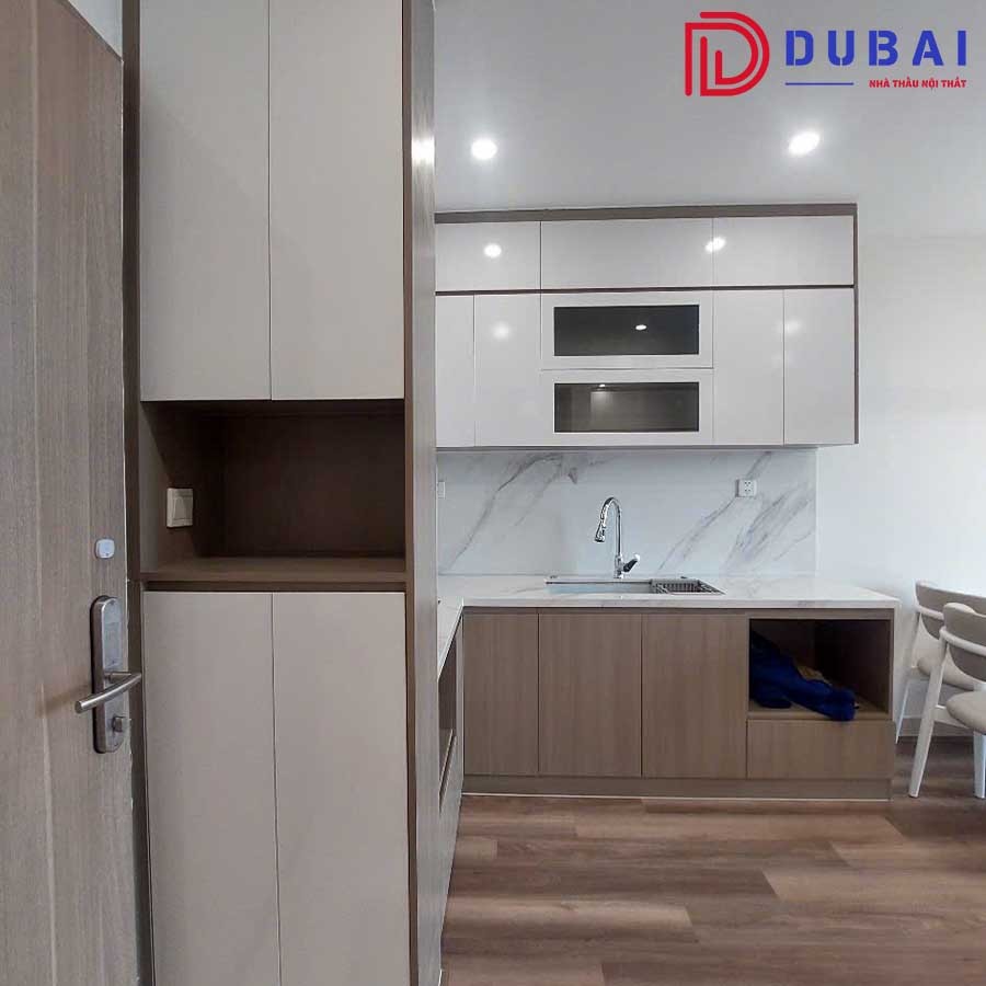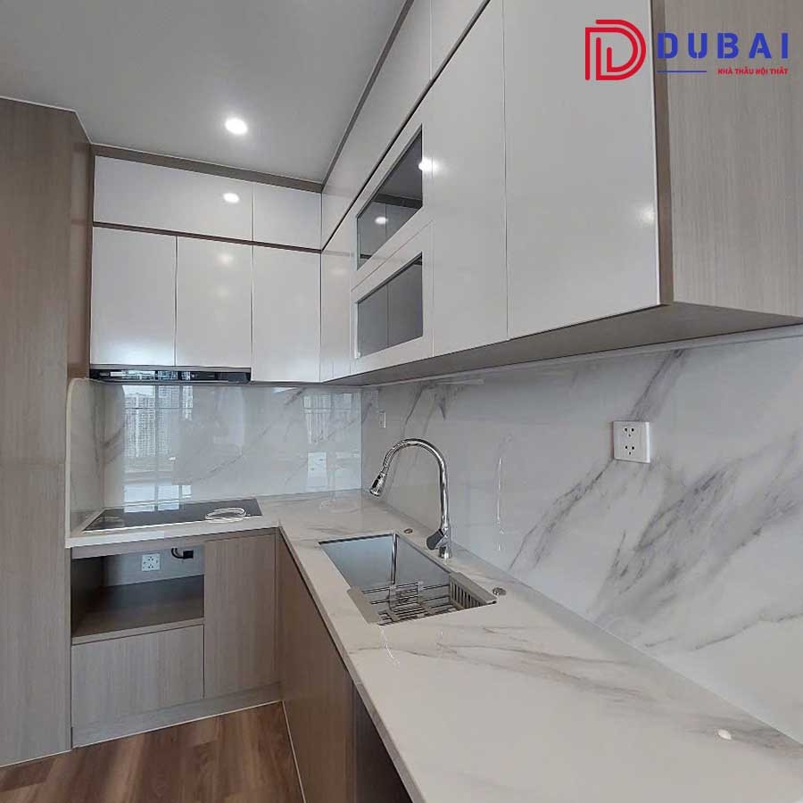 ♦ Phong cách: Thiết kế này lý tưởng cho căn hộ 1–2 phòng ngủ, studio và nhà phố bề ngang hẹp. Bố cục chữ I/L giữ lối đi thông thoáng, mặt tủ sáng giúp nới cảm giác diện tích.
