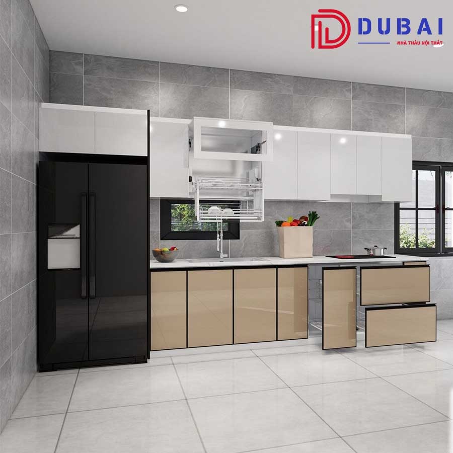 ♦ Phong cách: Rất phù hợp cho căn hộ chung cư, nhà phố hiện đại có diện tích vừa và nhỏ, nhờ vào sự gọn gàng và khả năng tận dụng tối đa diện tích bức tường. Đồng thời, nó cũng là lựa chọn lý tưởng cho những gia đình yêu thích sự trẻ trung, tiện nghi nhưng vẫn đảm bảo tính thẩm mỹ sang trọng trong không gian bếp.